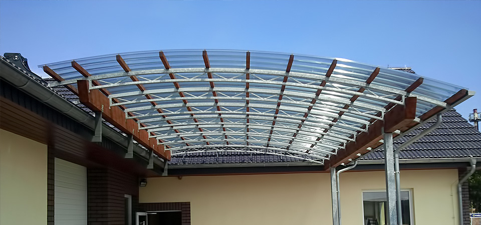 Świadczymy usługi w zakresie produkcji i montażu metalowych elementów budowlanych. Specjalizujemy się zwłaszcza w zastosowaniu nietypowych rozwiązań dla aluminium (stolarka okienna i drzwiowa, fasady, witryny, ogrody zimowe), dla stali (schody, podesty, szeroko pojęte elementy konstrukcyjne), stali nierdzewnej i czarnej. Ponadto zajmujemy się kompleksową realizacją zleceń dotyczących świetlików, klap dymowych i przewietrzających, zadaszeń z poliwęglanu.